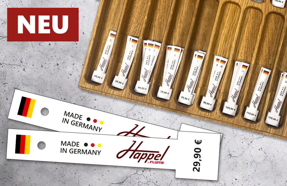 Für Juweliere, die das kostenneutrale Happel-Möbelkonzept einsetzen oder einen gleichwertigen Lagerbestand führen, bietet Flume einen kostenlosen Etikettenservice. Darüber hinaus profitieren Partner von attraktiven Treuerabatten, die sich nach Bestellvolumen und Dauer der Zusammenarbeit richten.