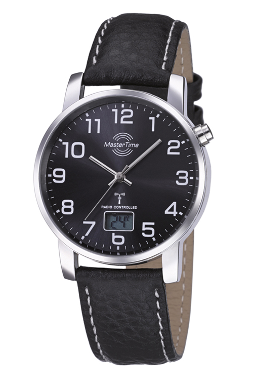 MasterTime Herren-Funkuhr Basic, schwarz - MTGA-10576-24L