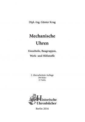 Sechs Jahre haben der Autor G. Krug und der Verlag Historische Uhrenbücher an der Erarbeitung einer zweiten Auflage dieses Standarduhrenbuches zur Uhrentechnik verbracht. Nachdem rechtliche Fragen mit der HUSS-MEDIEN GmbH als Rechtsnachfolger des Verlag Technik Berlin geklärt waren, haben Autor und Verlag ungezählte Zeichnungen verändert, verbessert bzw. korrigiert, Druck- und Formelfehler ausgemerzt und ein Kapitel über das Großdatum zugefügt. Weiterhin wurden natürlich sprachlich Anpassungen an die heutigen Verhältnisse vorgenommen. So ist ein ehemaliges DDR-Uhrenfachbuch wieder überarbeitet zugänglich. Es ist damit das letzte deutschsprachige Uhrenbuch, welches sich mit der Technik der mechanischen Uhren auseinandersetzt.
