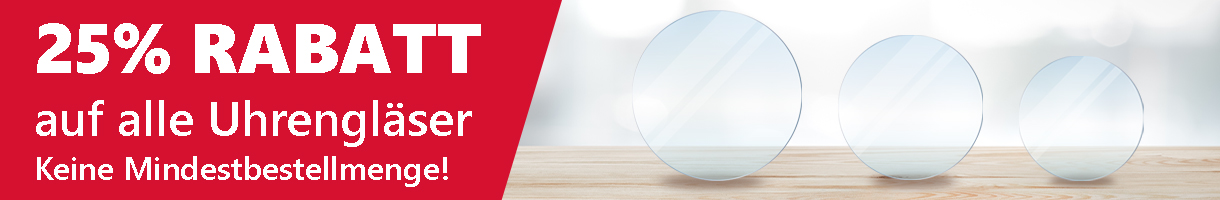 AB SOFORT FÜR DIE KATEGORIE UHRGLÄSER: 25 GLÄSER FREI SORTIERT BESTELLEN UND 25% MENGENRABATT SICHERN!