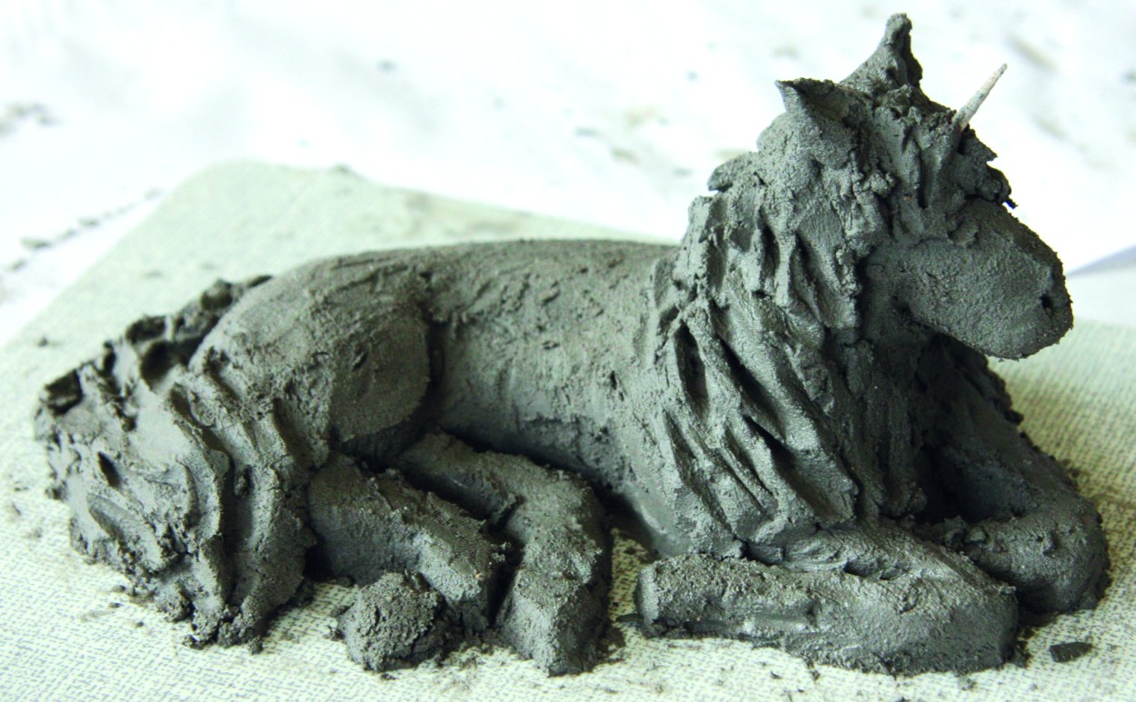 Immer mehr technische Produkte aus dem handwerklichen Verarbeitungsbereich lassen sich so weiter entwickeln, dass sie auch für die künstlerische Anwendung verwendbar sind. Dazu gehört dieser universelle Knetbeton, der wie alle anderen Mörtelmassen aus Sand und Zement, zusätzlich noch mit einigen Modifi kationen so vermischt wurde, dass er sowohl für das hobby- oder therapeutische Formen und Gestalten, darüber hinaus auch im kunsthandwerklichen Anwendungsbereich erfolgreich verarbeitet werden kann. Im Gegensatz zum klassischen Zement enthält dieser modellierfähige Knetbeton weniger aggressive Inhaltsstoffe, weil er neben etwas Zement noch weitere Mineralstoffe beinhaltet. Aufgrund der reduzierten Alkalinität, ist es bei diesem Knetbeton nicht unbedingt erforderlich, beim Modellieren Schutzhandschuhe zu tragen. Die im Beton verbleibende alkalische Wirkung greift jedoch allmählich die Fettschicht der Haut an und baut diese durch Verseifung ab, wodurch die Haut rissig und spröde wird. Das Mischen und Kneten der Mischung sollte daher stets mit Schutzhandschuhen erfolgen. Nach dem Modellieren mit ungeschützten Händen und Fingern, sollten Sie eine Fettcreme auftragen, um den natürlichen Fettgehalt der Haut wiederherzustellen. Ist Ihre Haut sehr empfindlich, sollten Sie auf Schutzhandschuhe nicht verzichten.