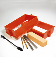 Komplett mit Formverschlussteilen (Säulen), Lanzette und Stampfholz, für ca. 2kg Formsand.