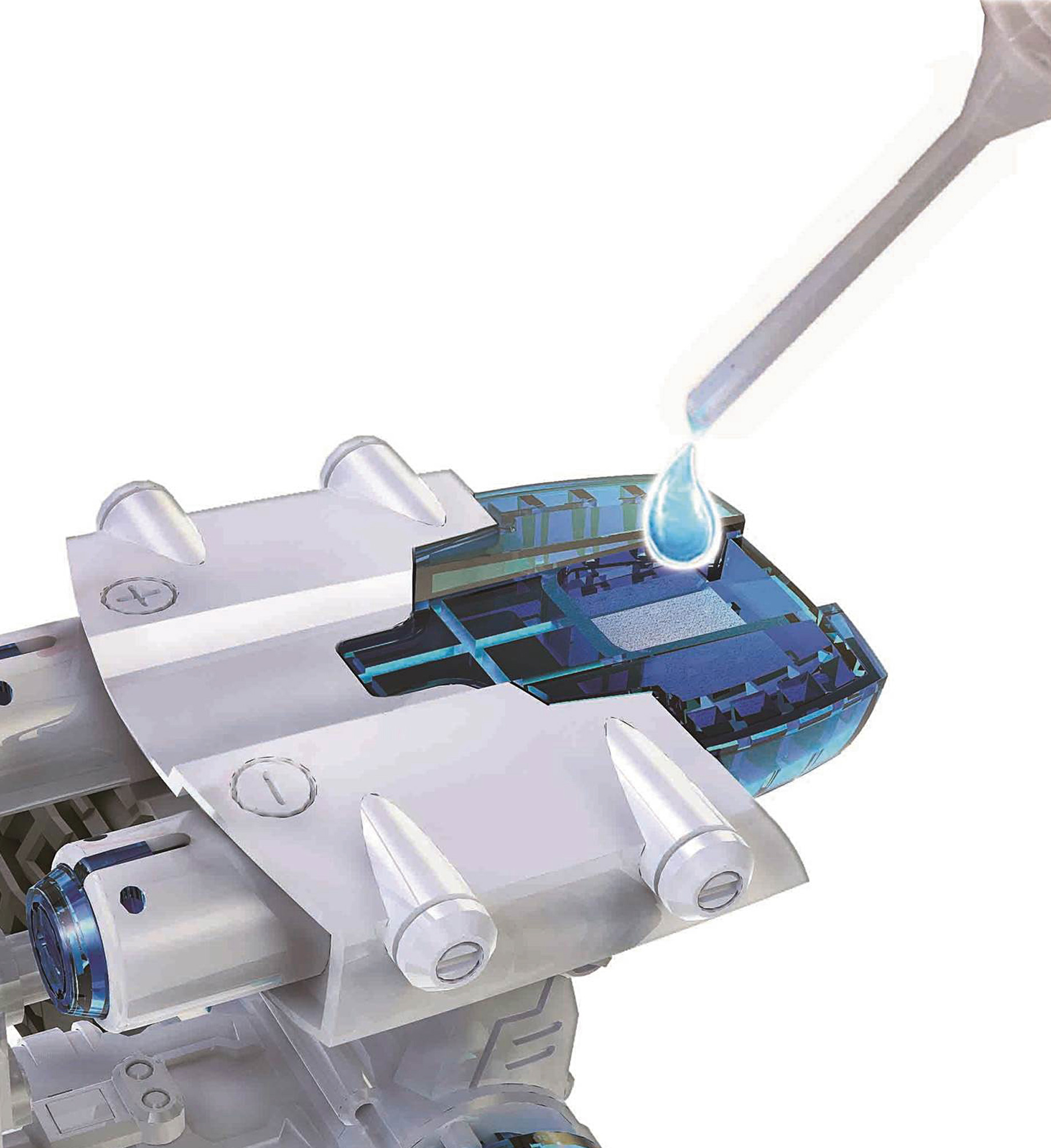 Zwei bis drei Tropfen Salzwasserlösung reichen schon aus, um das Fahrzeug bis zu 5 Minuten in Bewegung zusetzen.