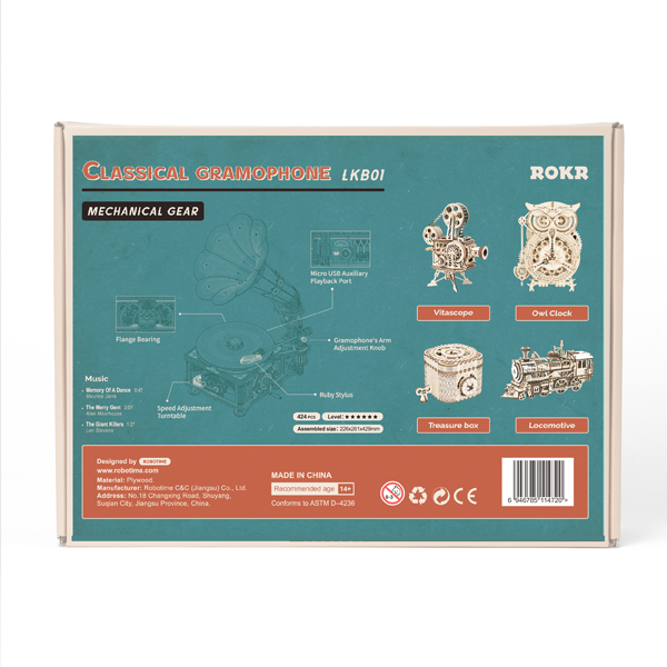 ROKR 3D-Bausatz Grammophon - vollfunktionstüchtiges Meisterwerk