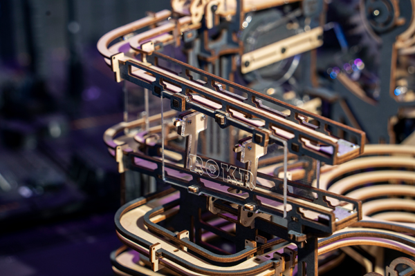 ROKR Holz-Kugelbahn/ Murmelbahn Night City - spektakuläre Mechanik