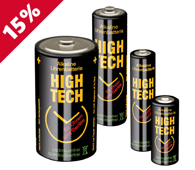 15% Rabatt auf HIGH TECH Großuhrbatterien