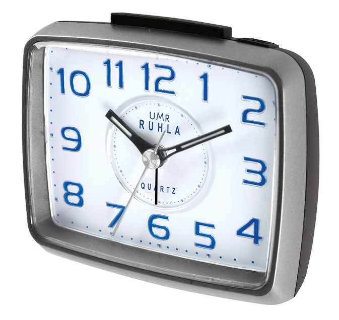 UMR Quarzwecker silber, mit schleichender Sekunde, Oben-Absteller und super LED-Beleuchtung