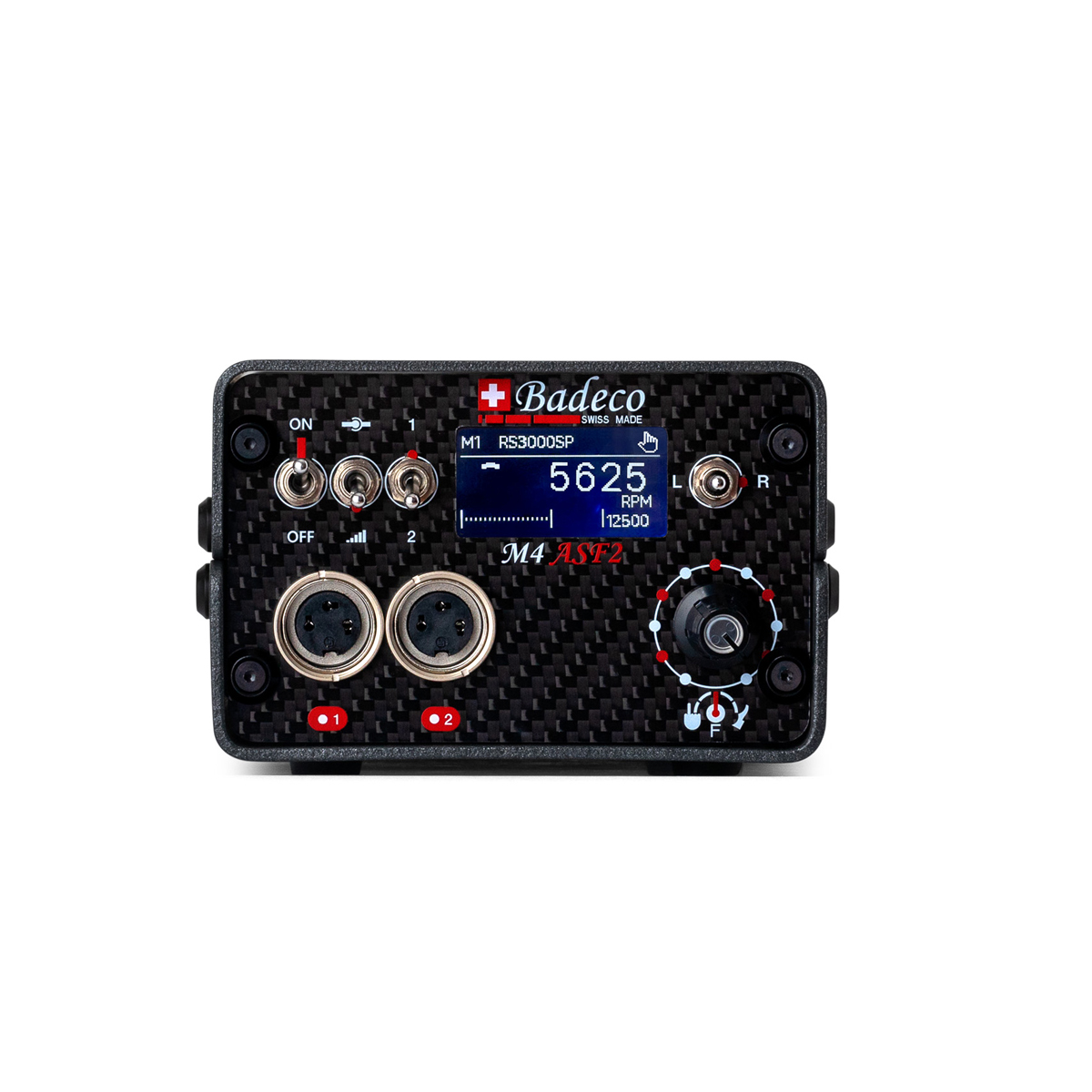 Das Steuergerät M4 ASF 2 wurde speziell für die anspruchsvollen Bedürfnisse von Juwelieren, Uhrmachern und Künstlern entwickelt, ist dabei dennoch einfach zu bedienen. Der Drehzahlbereich liegt zwischen 2.000 bis 20.000 U/min und kann stufenlos geregelt werden.