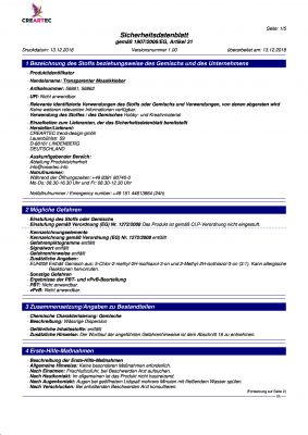 • CLP-Einstufung: Schadstofffrei - unterliegt nicht der GHS-Verordnung