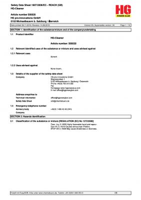 Primer / Haftvermittler: Für die Vorbehandlung von schwer zu verklebende Kunststoffen wie z.B PE, PP oder Silikon.• OPTIMALE Haftung: Der Primer ist ein Haftvermittler der Spitzenklasse das Optimum aus deinem Klebstoff heraus.• MACH’ DAS UNMÖGLICHE MÖGLICH: Mit dem Primer verklebst du Materialien, die ohne diesen Haftvermittler nicht halten würden.Mit dem HG Primer klebst du Materialien zusammen, die sonst einfach wieder auseinanderfallen.Du klebst etwas zusammen und lässt es über Nacht trocknen. Am nächsten Tag willst du überprüfen, ob das Teil wieder hält, berührst es - und schon fällt es auseinander, als hättest du Wasser statt Kleber verwendet. Aber das hast du sicher nicht – und der Klebstoff ist meist auch nicht daran schuld. Mit dem Haftvermittler HG Primer gelingt dir auch das Verbinden von schwer zu verklebendenKunststoffen. Egal ob im Hobbybereich, im Haushalt oder in deiner Garage. Da die Industrie diese Materialien immer häufiger herstellt, wirst auch du früher oder später darauf treffen - das ist so sicher, wie das Amen in der Kirche. Mit diesem Haftvermittler bist du bestens für diesen Moment gerüstet.Zu den Kunststoffen, die sich ohne Primer schlecht verkleben lassen, gehören solche, in die PE, PP, EDPM usw. eingearbeitet werden.Wie testet man, ob man den Primer braucht oder nicht?Mit einem einfachen Trick kannst du feststellen, ob der Kunststoff mit dem HG Primer vorbehandelt werden muss:Streu dazu ein kleines Häufchen Granulat auf das zu klebende Material und benetze es mit einem Tropfen Kleber. (5 Minuten abkühlen lassen) Lässt sich die hart geworden Masse ohne große Kraftanstrengung mit dem Finger verschieben oder lösen kann der Klebstoff keine Bindung zum Grundmaterial herstellen und man benötigt den Primer.Hält hingegen die hart geworden Masse oder lässt sich nur mit großer Kraftanstrengung entfernen, so kann der eigentliche Klebevorgang ohne den Primer durchgeführt werden. Achtung: Nach der Verwendung des HG Primers braucht das Aushärten länger. Die optimale Endfestigkeit tritt erst nach 24 Stunden ein.Anwendung1. Nutzung des HG PrimersDamit der Primer gut einziehen kann, sollte die zu verklebende Fläche angeraut werden. Anschließend wird eine feine Schicht des Haftvermittlers auf die betroffene Stelle aufgetragen. Die Oberflächenstruktur verändert sich sofort.2. KlebenDas mit dem Primer behandelte Material etwa 5 Minuten ablüften lassen. Danach kann mit dem eigentlichen Klebevorgang begonnen werden. Zu beachten ist, dass die tatsächliche Endfestigkeit nach Anwendung des Primers erst nach 24 Stunden erreicht ist. Je nach Material kann die Endfestigkeit stark variieren.345865 - Primer - 15mlGefahrenhinweis:GEFAHRn-Heptan. Flüssigkeit und Dampf leicht entzündbar. Kann bei Verschlucken und Eindringen in die Atemwege tödlich sein.Verursacht Hautreizungen. Kann Schläfrigkeit und Benommenheit verursachen.Sehr giftig für Wasserorganismen mit langfristiger Wirkung. Ist ärztlicher Rat erforderlich, Verpackung oderKennzeichnungsetikett bereithalten. Darf nicht in die Hände von Kindern gelangen.Von Hitze, heißen Oberflächen, Funken, offenen Flammen sowie anderen Zündquellen fernhalten. Nicht rauchen.