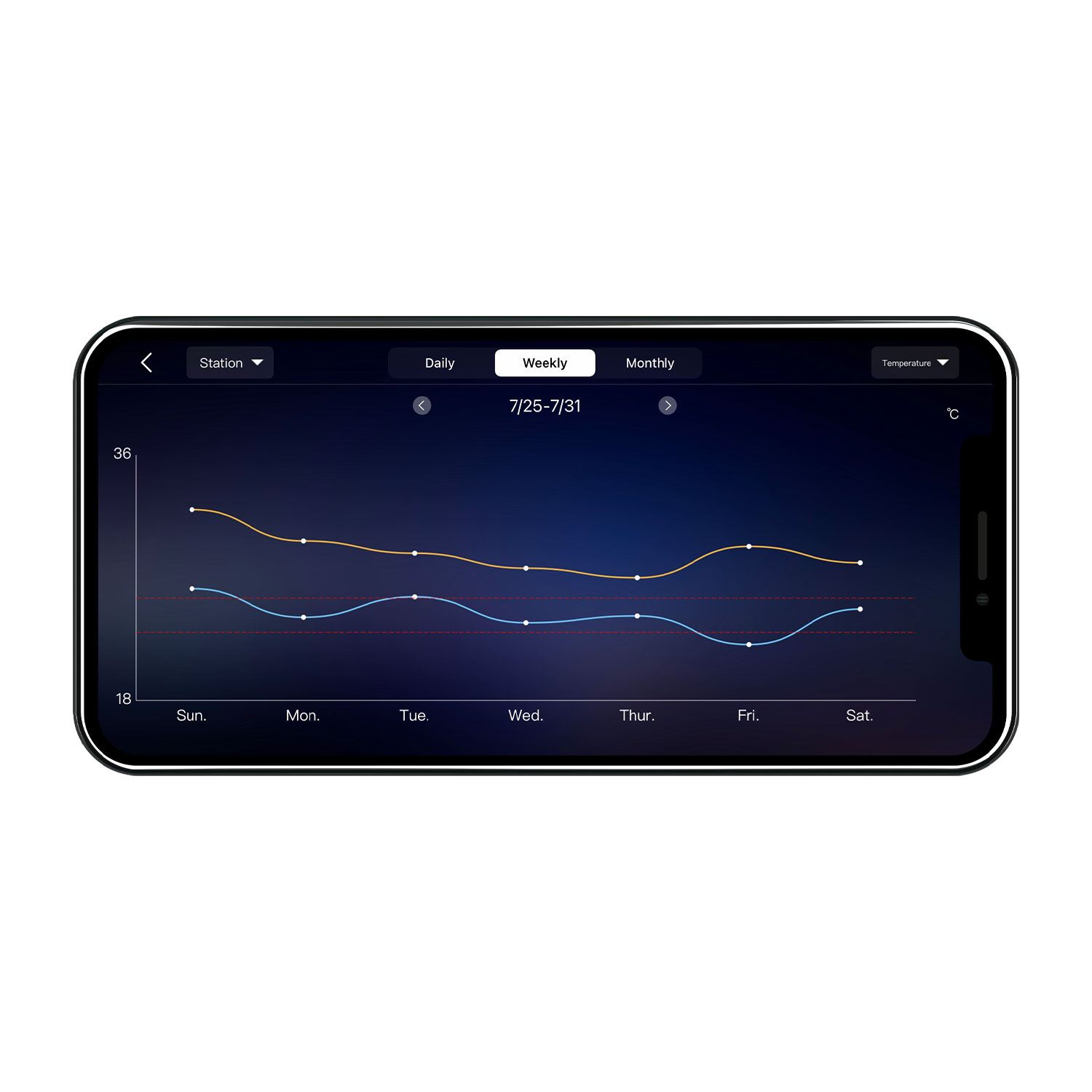 ● Temperatur- und Luftfeuchtigkeitsalarme in der App einstellbar