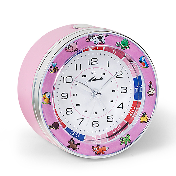 Atlanta 1982/17 pink alarm clock for kids, sweeping second
