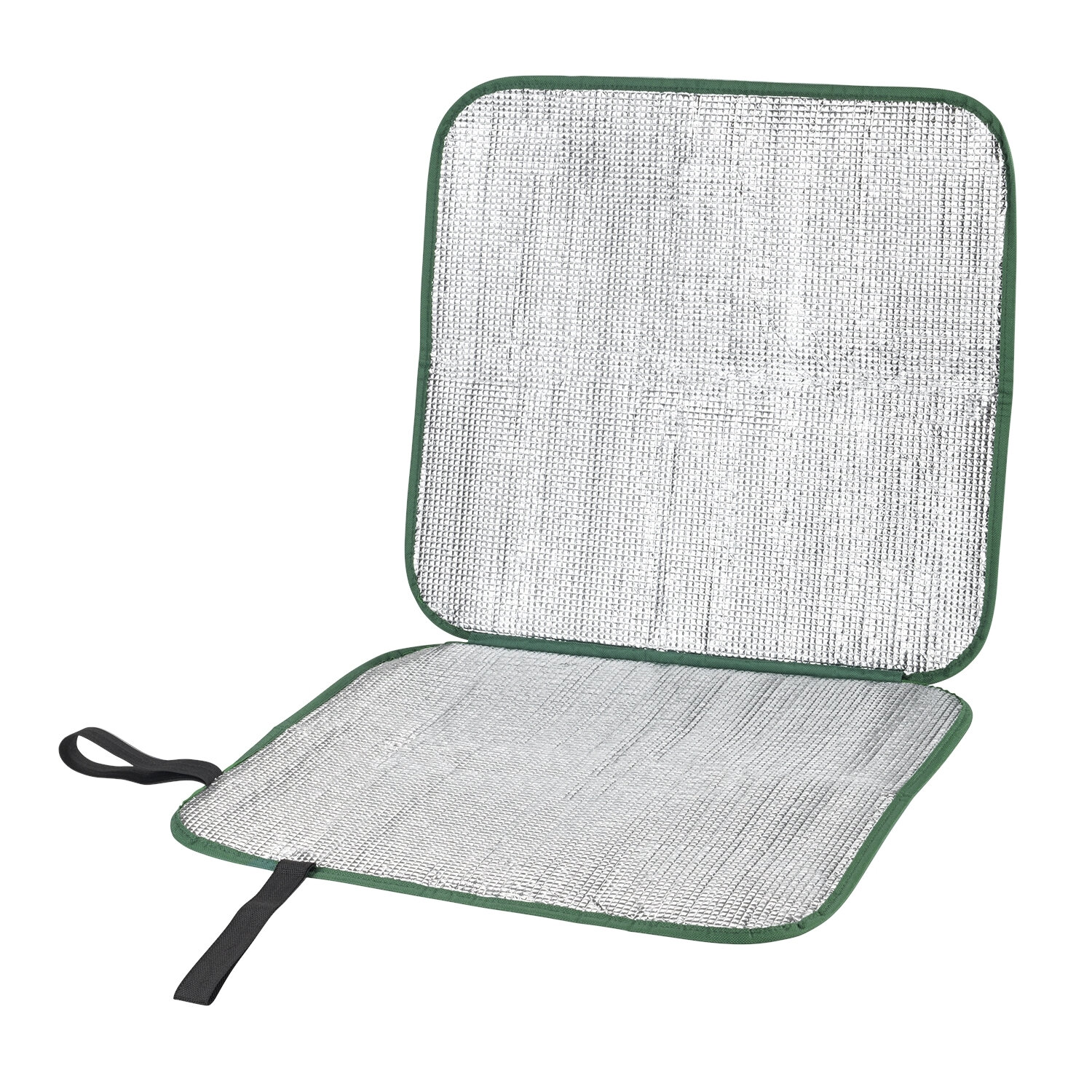 When unfolded, it either offers space for two people or – upright as a backrest – keeps your back warm and dry. When folded, the insulation protection is now doubled. The aluminum coating reflects your own body heat and is 100% waterproof.