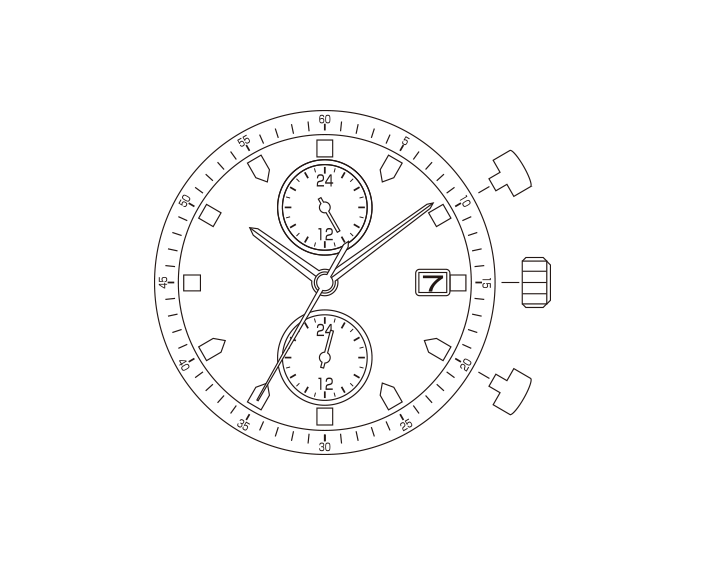 Kleinuhrwerk Quarz Miyota JP11 SC, D3, Dualtime, 24hrs