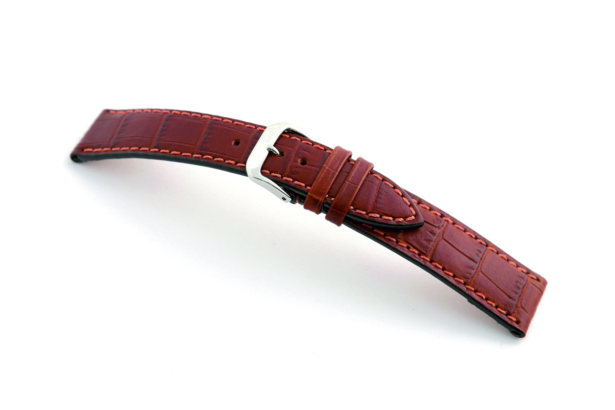 TAMPA - Alligatorprint - Echt rundleer met reliëf – Stiksel: mee kleurend - Banddikte 3,5/3,0 mm, licht aflopend - Licht gevuld - Varianten: In een aanzetbreedte van 20 mm bieden wij - Standaard - de gespbreedte van 18 mm en 16 mm aan. Een fijne horlogeband van zacht rundleer met alligatorprint met reliëf. De licht aflopende vulling in combinatie met de smaakvolle ton sur ton stiksels maken van dit horlogebandje een echte eyecatcher. Dit leren bandje nestelt zich comfortabel om de pols van de drager en past dankzij zijn opvallende nerf bij alle hoogwaardige, exclusieve en elegante horloges. Een horlogebandje met een opvallend mooi reliëf made in Germany. *Master-Piece* *Holstered-Piece* (licht gevuld)