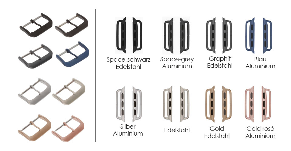 In de set zitten alle connectoren & sluitingen in 8 typische Apple kleuren. Getrouwe kleurweergave en hoge kwaliteit voor een optimale, individuele aanpassing van de look. De connectoren zijn met schroeven aan de leren band bevestigd. Bandjes met een aanzetbreedte van 22 mm zijn geschikt voor kasten van 38, 40 of 41 mm. Bandjes met een aanzetbreedte van 24 mm voor kasten van 42, 44 of 45 mm.JUWELIER#BUSINNES deed de praktijkcheck
