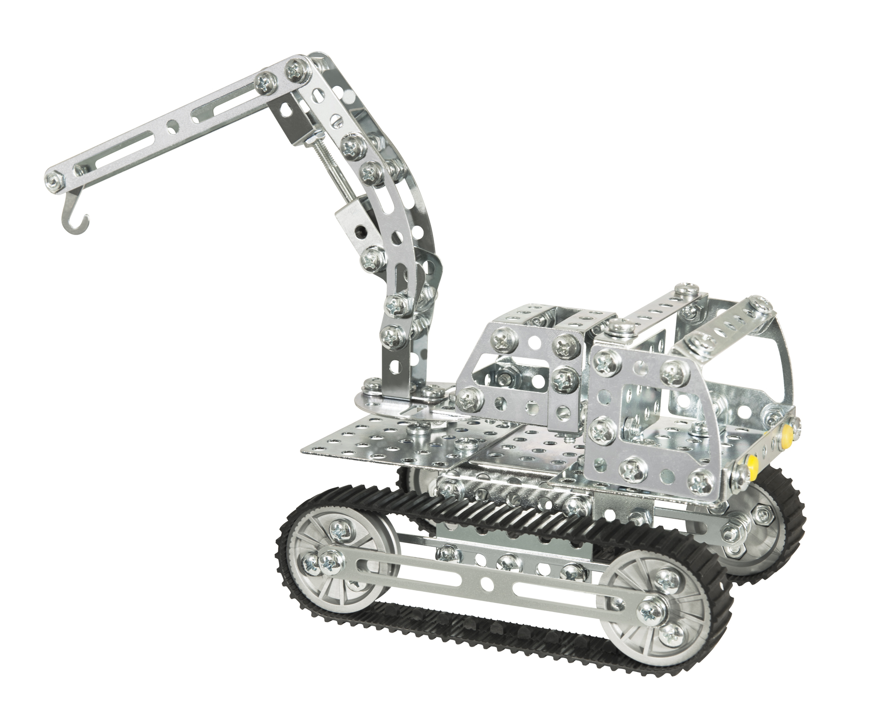 Uit meer dan 340 onderdelen kunnen minimaal drie verschillende modellen worden gebouwd. De graafarm en shovel zijn verplaatsbaar en de rubberen loopbanden zorgen ervoor dat ze geruisloos rollen.