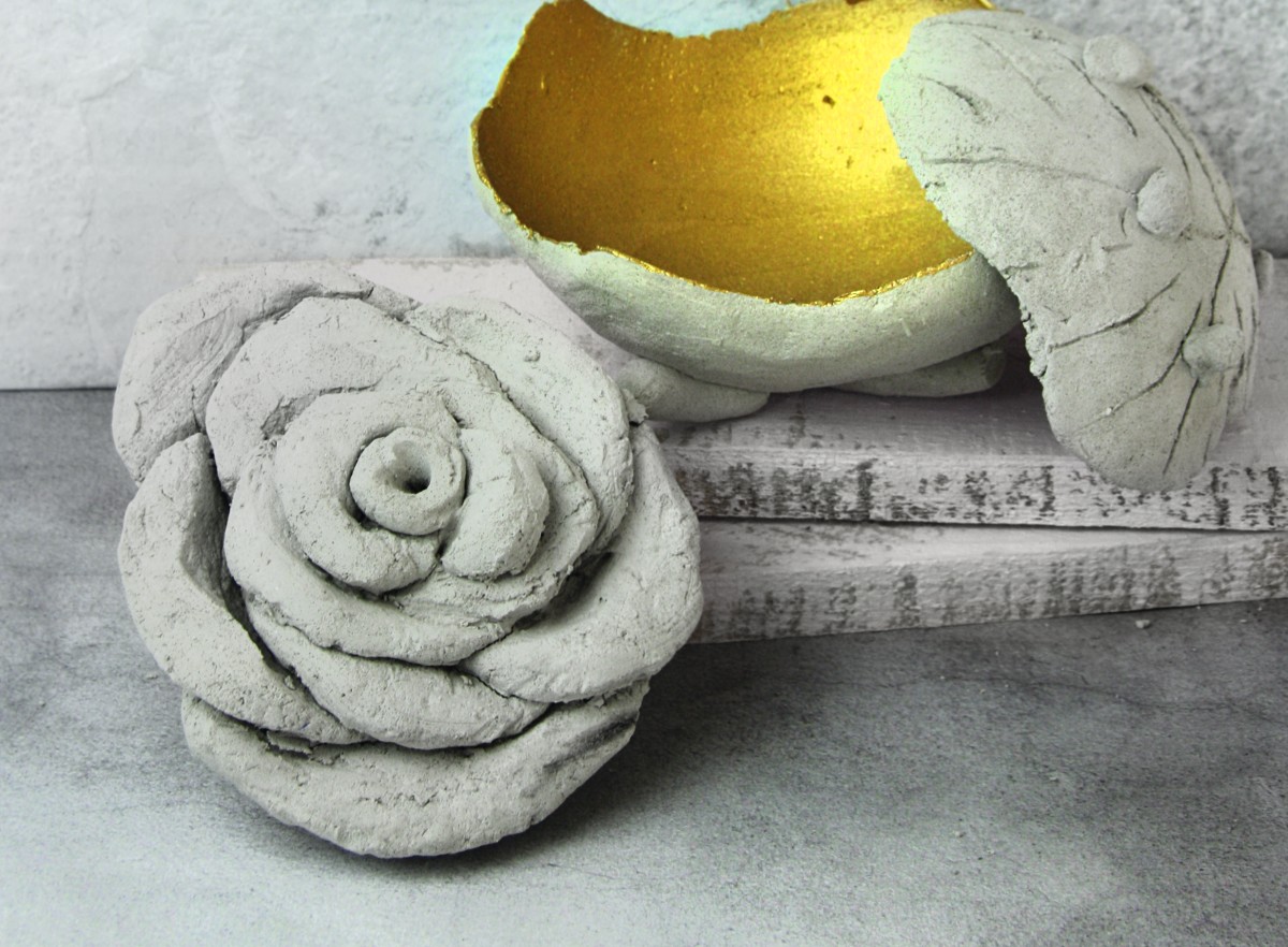 Perfect om uit de kneedmassa praktische gebruiksvoorwerpen zoals schalen, kisten, deurplaatjes, kandelaars en beeldjes te vormen.
