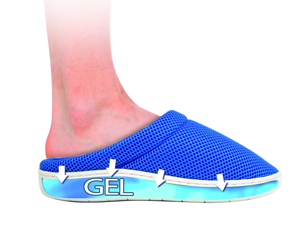 De buitenkant bestaat uit ademend open weefsel, de binnenkant uit bijzonder zacht en verkoelend materiaal. Deze slippers kunnen de druk op je voeten verminderen bij het lopen en staan. De gel zolen passen zich aan je voeten aan en vervormen niet.