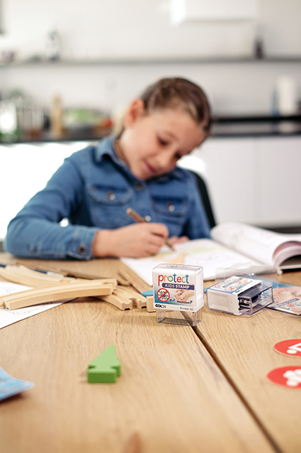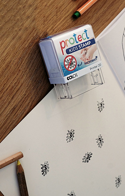 De Protect Kids Stamp is wereldwijd uniek (Made in Austria). Het product is bedoeld voor gezinnen, kinderen, maar ook voor kleuterscholen, scholen en iedereen die zichzelf kan beschermen tegen het risico op infectie door middel van een ingenieus eenvoudig en creatief idee. Het is bedoeld om mensen te helpen zichzelf te beschermen en de verspreiding van deze virale infectie moeilijker te maken en te stoppen.