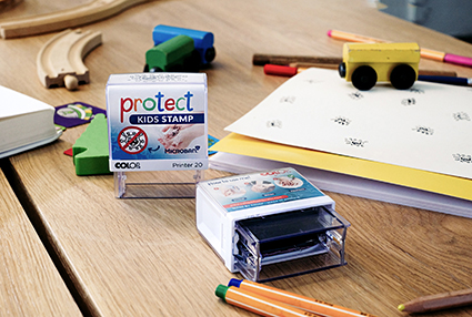 De Protect Kids Stamp is de slimme, gemakkelijk te begrijpen oplossing: stempelen - wassen - beschermen.
