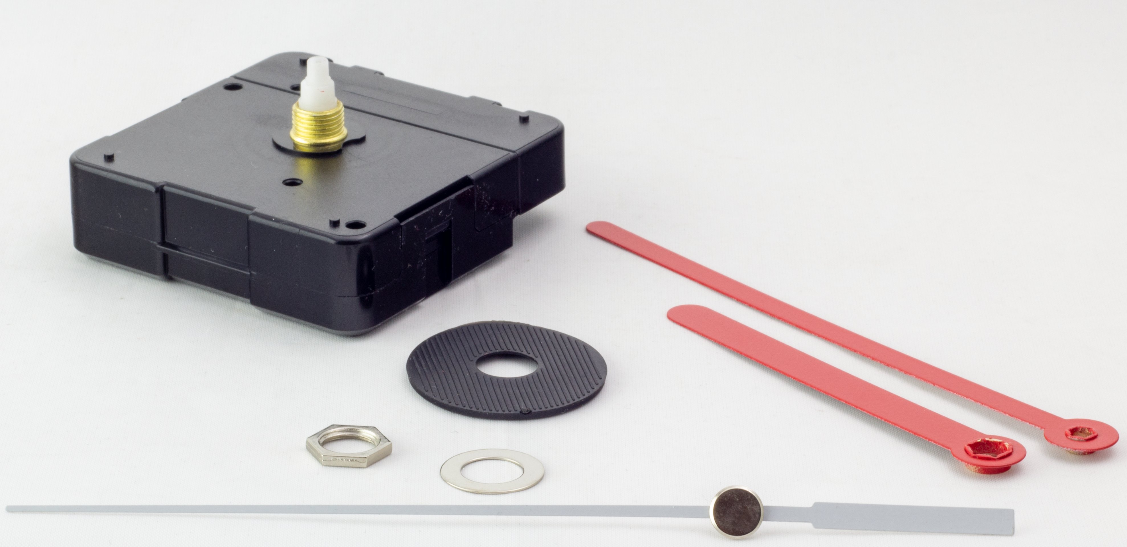 Vaak worden echter standaard uurwerken aangeboden voor dit zelfbouw project, maar vanwege hun grootte steken de assen onaantrekkelijk uit de plaat of is de centrale schroef te lang.