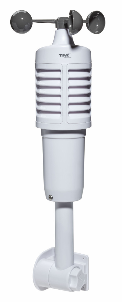Außentemperatur, Luftfeuchtigkeit und Windgeschwindigkeit über kabellosen Außensender Reichweite max. 80 m (Freifeld)