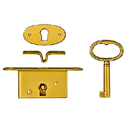 Aus Messing. Komplett mit Schlüsselschild, Schließblech und Schlüssel.